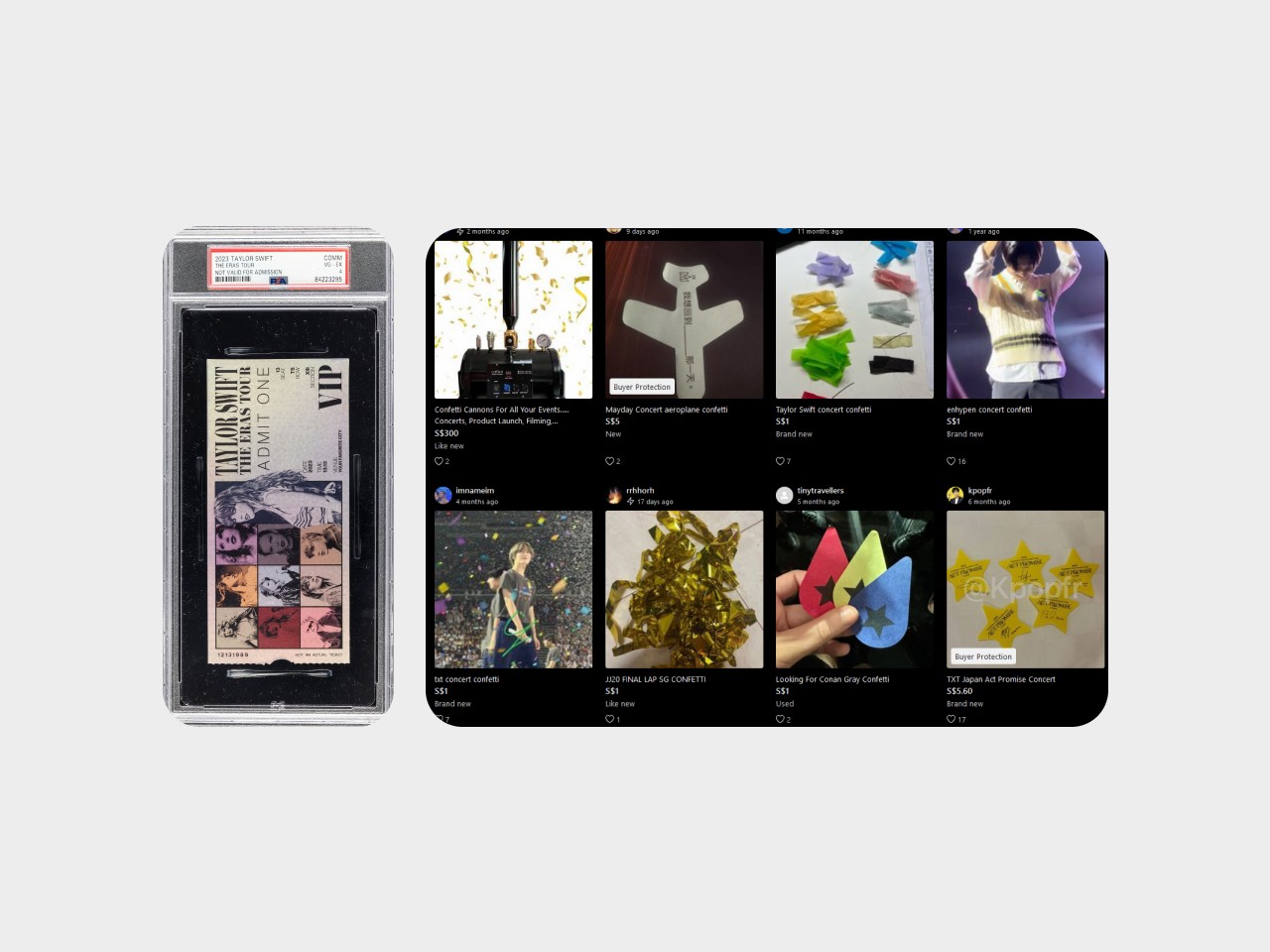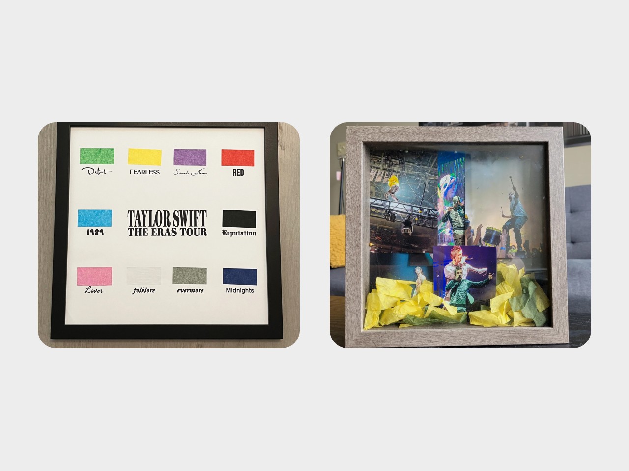 A quick Reddit search on concert fandom reveals the lengths fans go to when collecting concert memorabilia. In these cases, here are two examples of confetti collected during concerts and repurposed in creative ways.