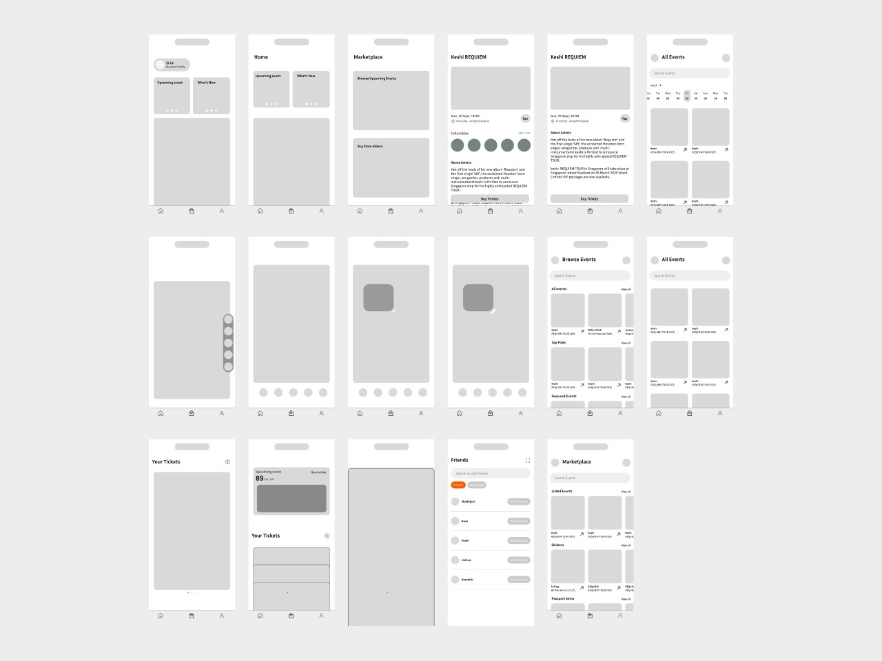 These wireframes reflect my early thinking around the research insights and project goals. They gave me a clearer picture of how the app might function, allowing me to map out the core features and overall structure before moving into high-fidelity design.