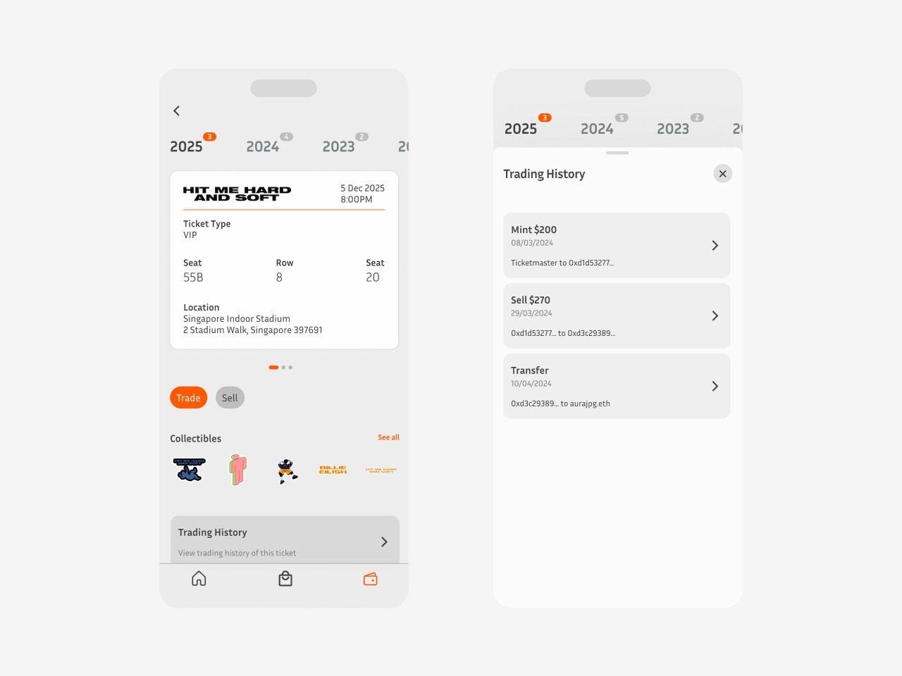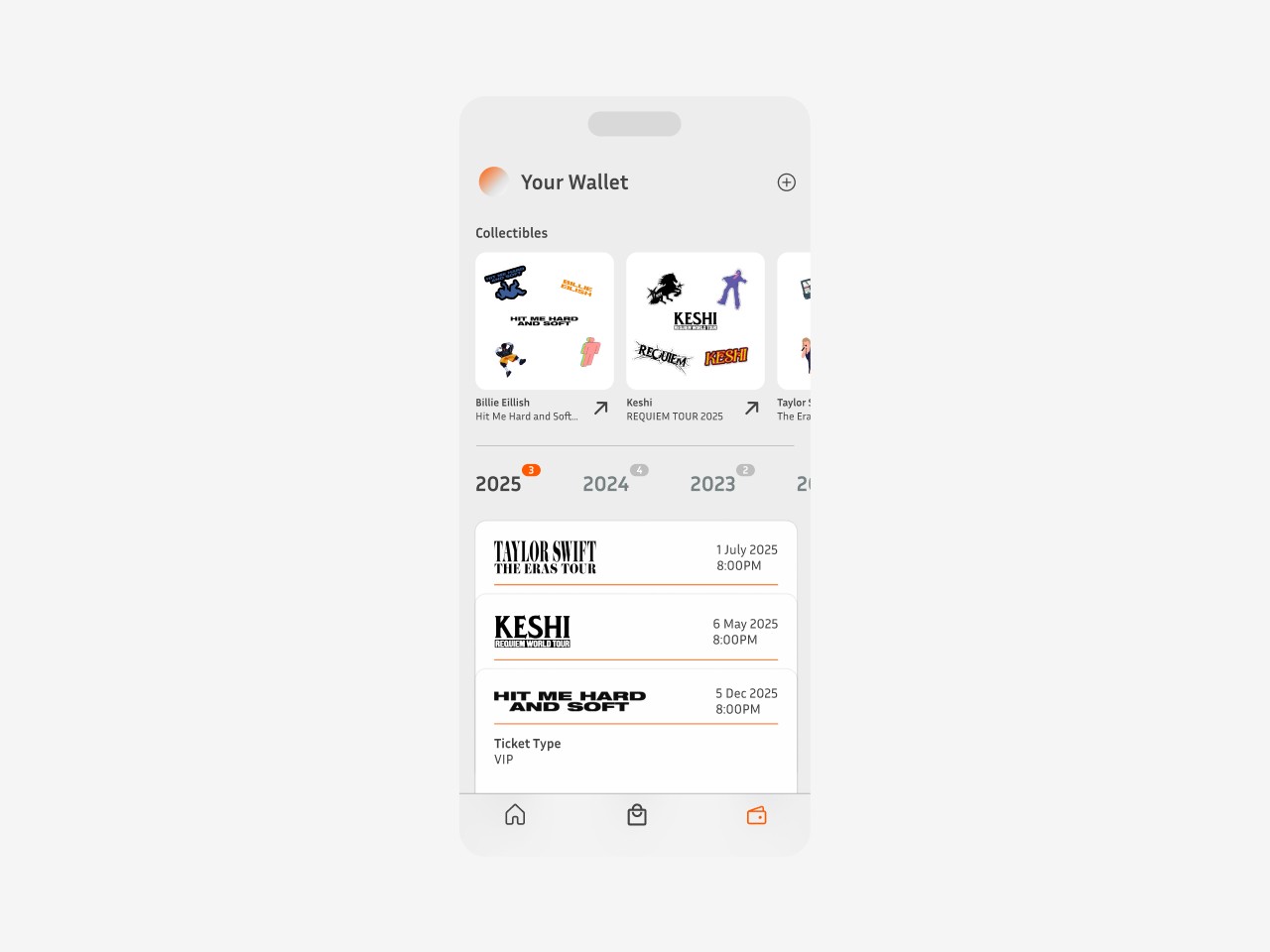 To futher digitalise the experience of collecting concert tickets, EventID sorts out all your past tickets for you to look back to every year.