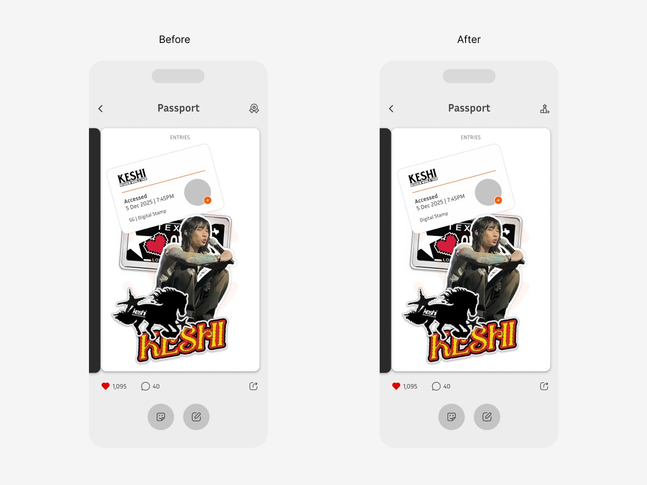 The Digital Passport also functions as a profile page, where users can like, comment on, and share each other’s passports. This makes the Digital Passport your concert identity, not only that, it’s also a mini social hub for concertgoers, where you can explore each other’s highlights and personalize them with collectibles.