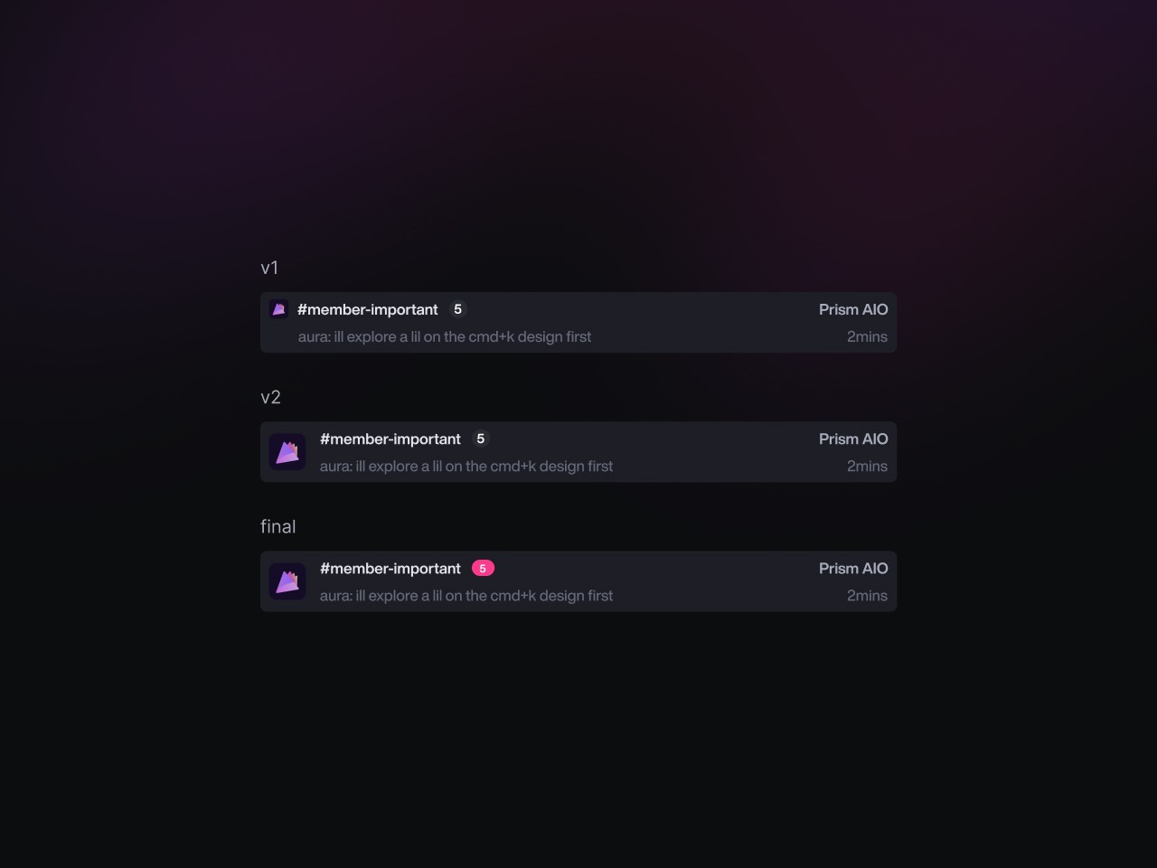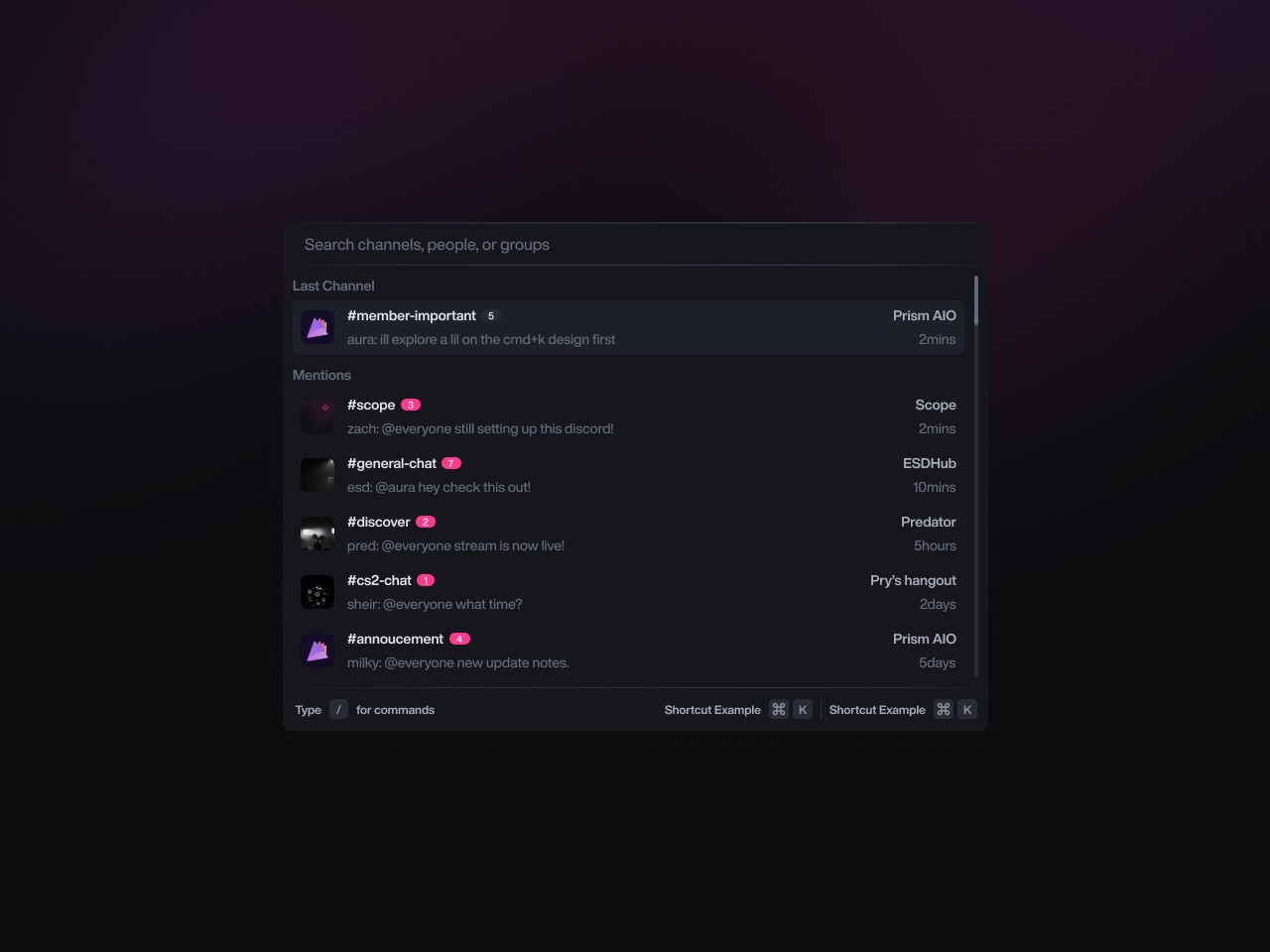 While improving usability, I explored ways to make the CMD+K menu more powerful, inspired by Raycast. My initial idea was to add full chats to the menu, allowing quick replies without leaving it. However, the team rejected this, as clicking would still redirect users to the chat.